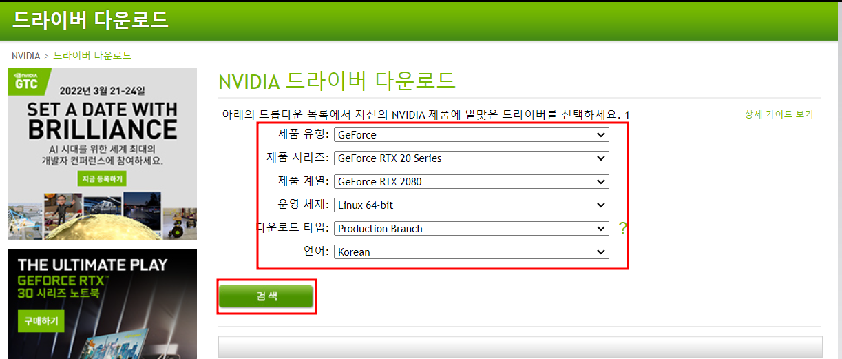 위 링크 들어가서 본인 그래픽카드 맞는 드라이버 버젼 확인. 본인은 RTX2080.