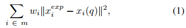 정확한 벤치마크 신체각도(Ground Truth)는 마커 기반 동작감지 시스템은(Mocap) 부착된 신체부위의 3차원 좌표정보를 도출한 값으로 간주하였다. 이 연구에서 Inverse Kinematic 단계를 근골격 모델에 적용하여 마커의 위치좌표를 각도로 변환하도록 하였다. 그리고 마커를 부착한 모델의 각도와 예측한 값의 오차를 최소화하는 훈련을 진행하였다. 오차계측방법으로 Least Square Problem(Equation 1)을 통해 훈련을 수행하였으며, 수렴하는 기준은 0.0001, 시행횟수(Epoch)은 1000으로 학습하였다.