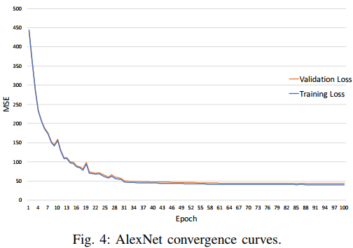 그림 4는 학습이 진행됨에 따라 학습데이터의 예측오차와 검증데이터의 오차가 수렴하는 곡선을 보여준다. 나타난 바와 같이 AlexNet은 서서히 훈련셋과 검증셋이 수렴하는 것을 확인할 수 있다.