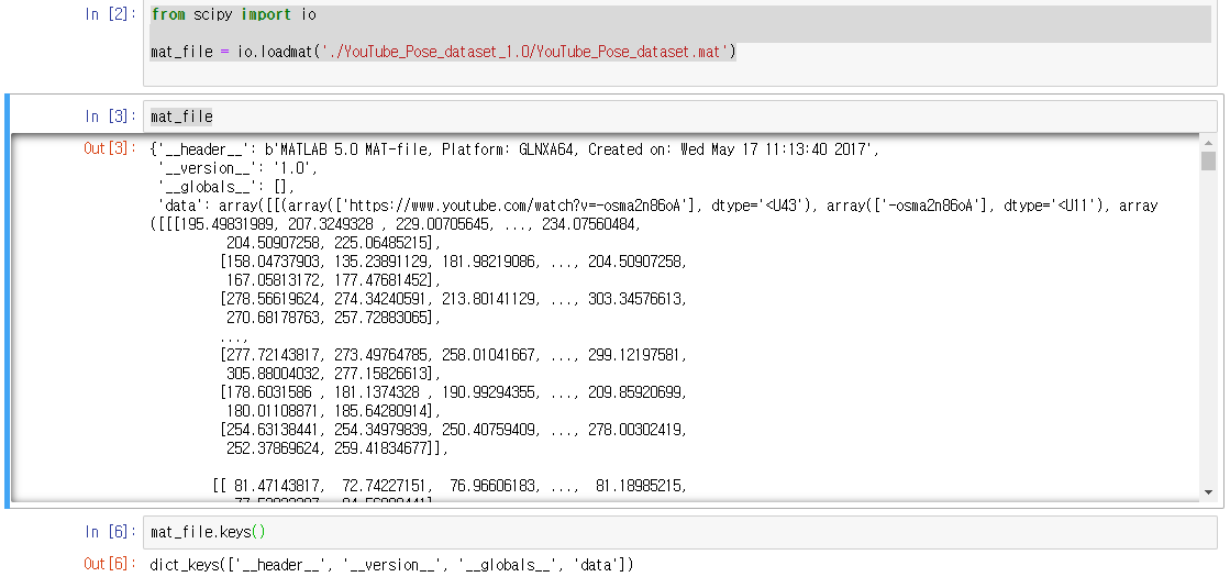 실제로 잘 불러왔는지 보려면 mat_file 을 실행시켜주자(In [3])