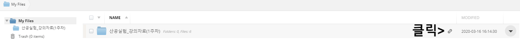 Step. 6 예시를 위해 폴더전체를 업로드했고, 폴더를 클릭하면 안에 들어있는 파일들이 보인다.