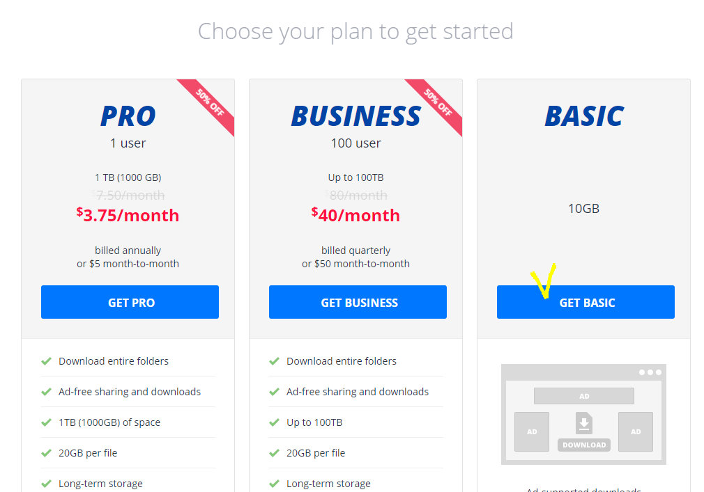 Step. 2 MediaFire 가입하기 (GET BASIC클릭)