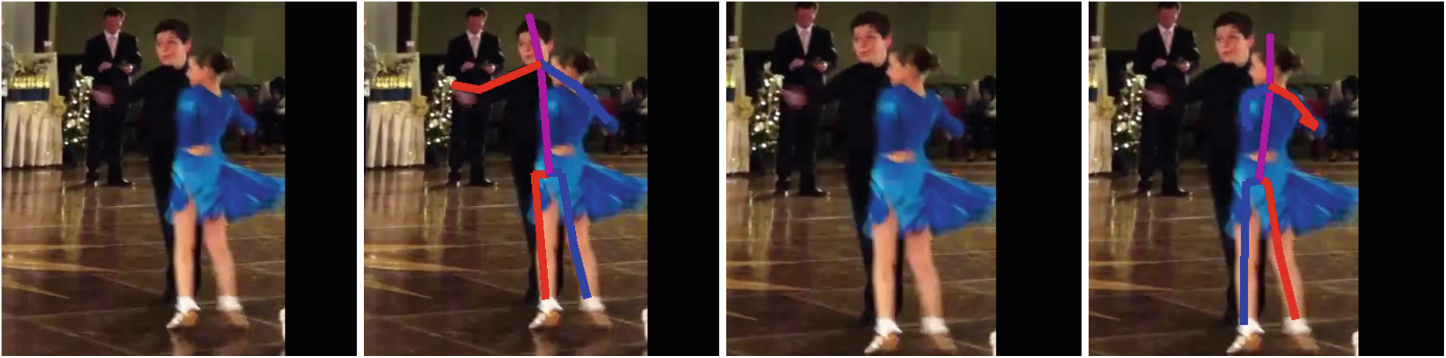 CPM(Convolutional Pose Machine)의 경우 이렇게 겹쳐져 있을 때 Center 기준으로 사람을 탐지하기 때문에 오류를 범하는 한계점이 있었다. 하지만 Hourglass 네트워크는 좀 더 어려운 이미지도 정확히 구분해서 탐지할 수 있다.