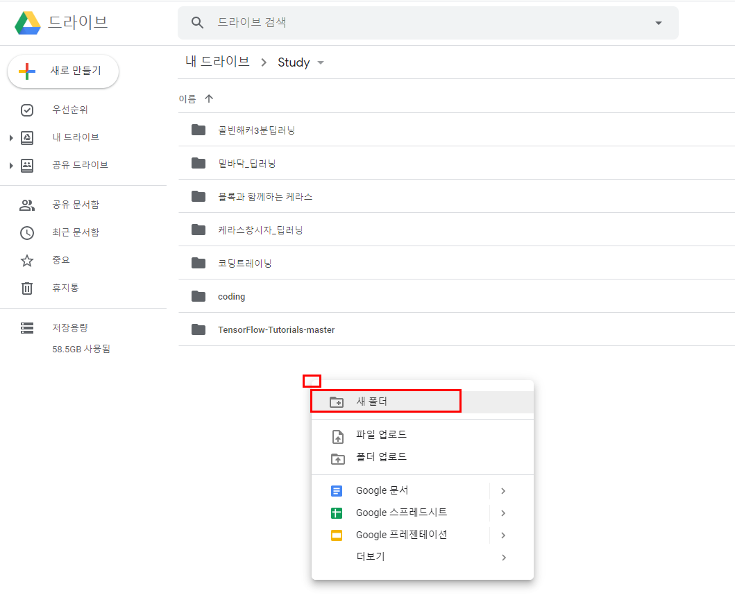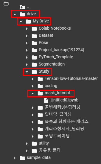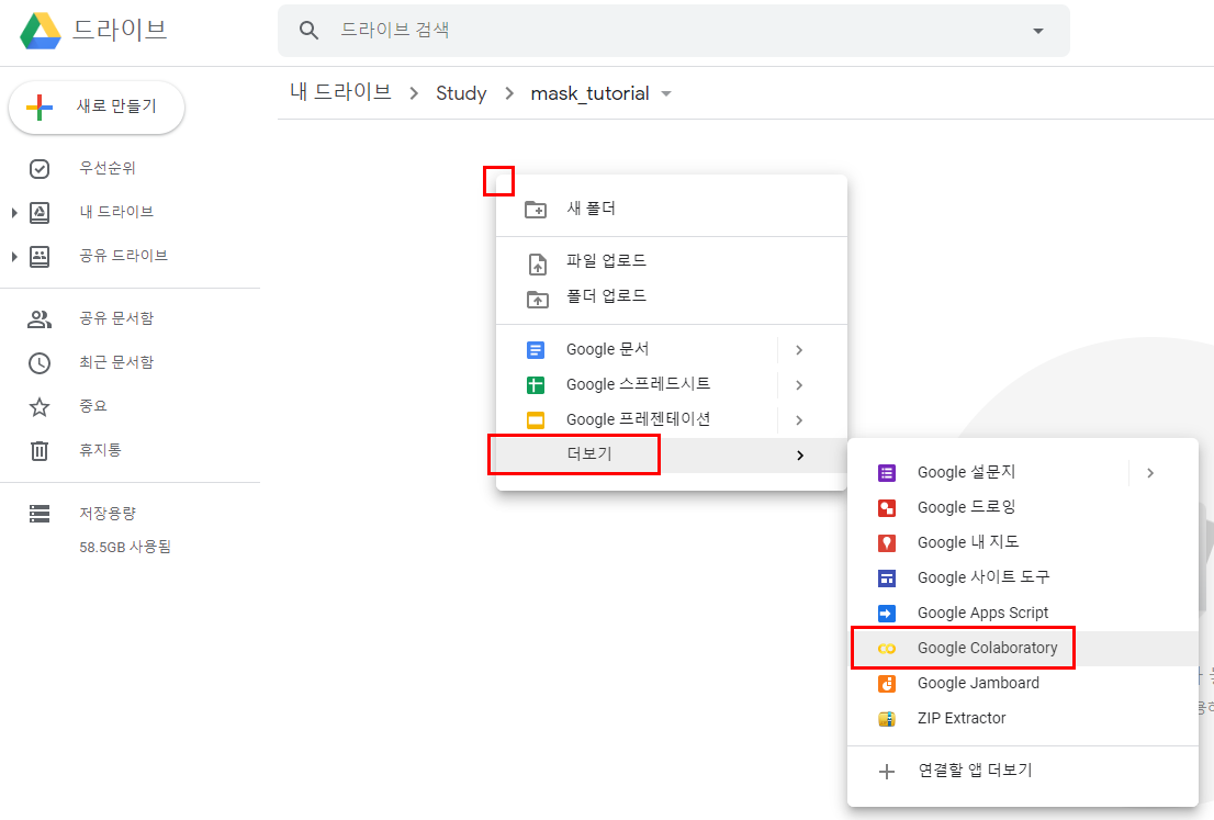 1. 구글드라이브에서 폴더하나 만들고(우클릭-새폴더-mask_totorial 폴더를 생성했다.)