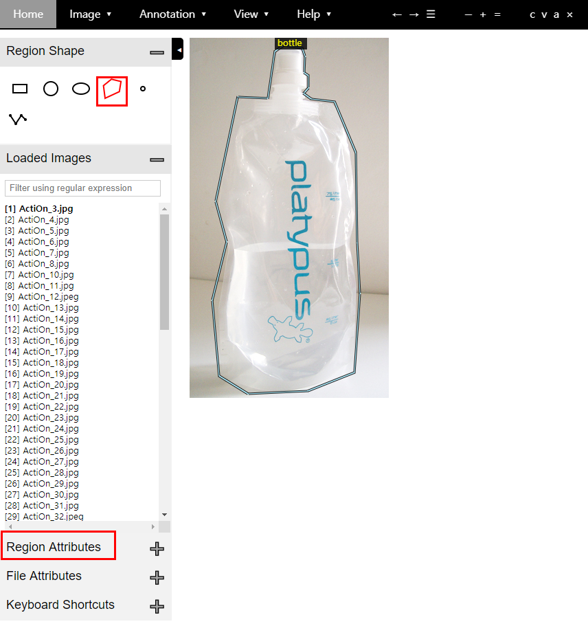 ▶폴리곤 모양을 누르고(빨간네모) - 사진에서 테두리를 클릭 클릭하면서 따준다-하단 Region Attribute클릭.