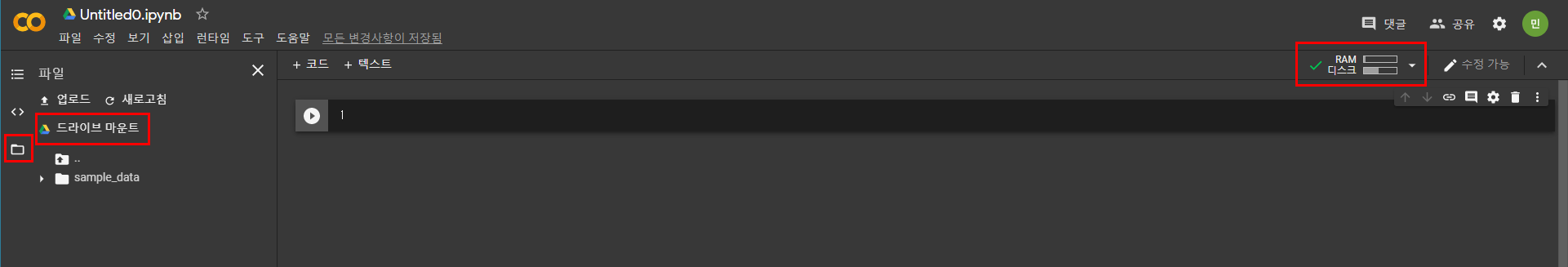 4. 마운트 하기=구글드라이브와 연동해서 파일을 사용하게 끔 연결하는 작업.