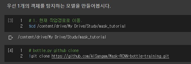 수정해야할 부분은 3번째 라인에 %cd /자기경로/Mask_RCNN/