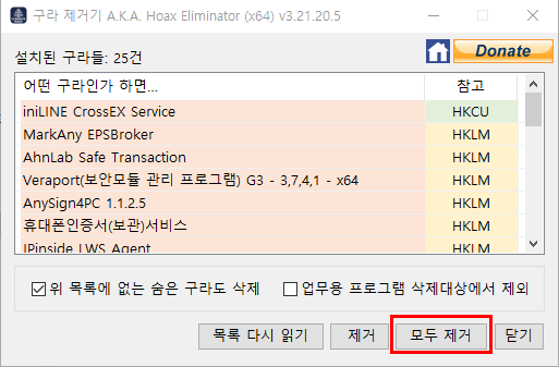 모두제거 해도되고 선택해서 제거도 가능하다. 마치 우리가 제어판-프로그램추가제거에서 일일히 삭제해줄때와 비슷하게 삭제할꺼냐고 계속 물어본다. 요새는 삭제할때 보안숫자도 입력하게하는데? 꽤나 지능적으로 변했다..쨔식들