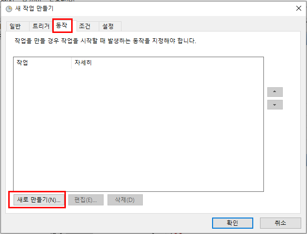 1. 작업 스케줄러 켜기 : 윈도우검색-" 작업 스케줄러" 클릭-우측 "작업만들기" 클릭