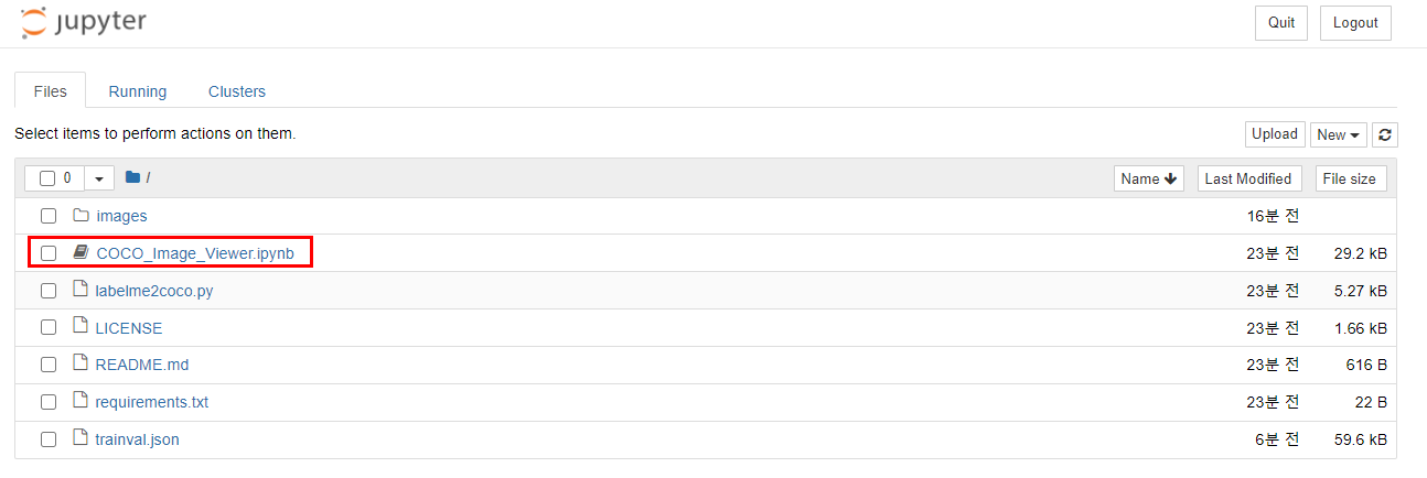 anaconda prompt 오픈-labelme2coco폴더로 경로이동-jupyter notebook 입력/오픈-COCO_Image_Viewer.ipynb 클릭