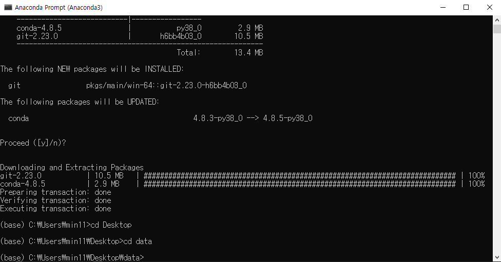 conda install git 입력엔터