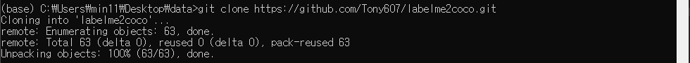 labelme 라벨링을 coco 포멧으로 변환해주는 코드 실행을 위해 github을 클론