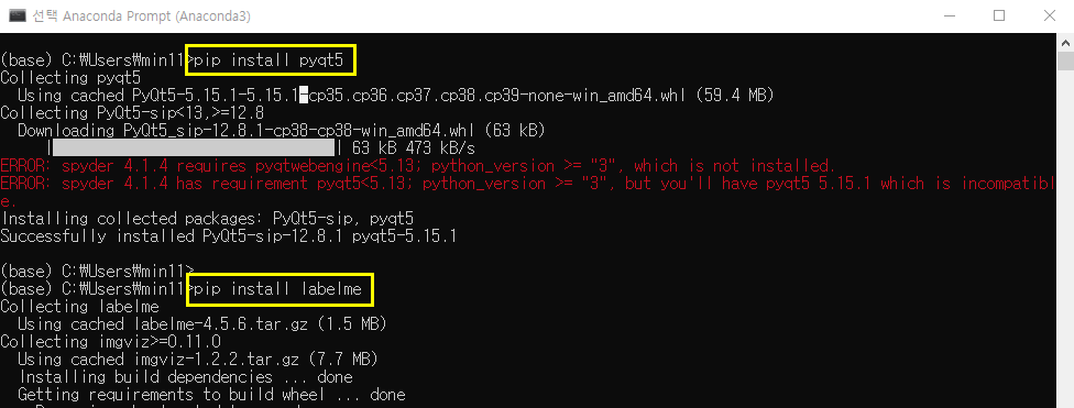 pyqt5 와 lableme 패키지 설치