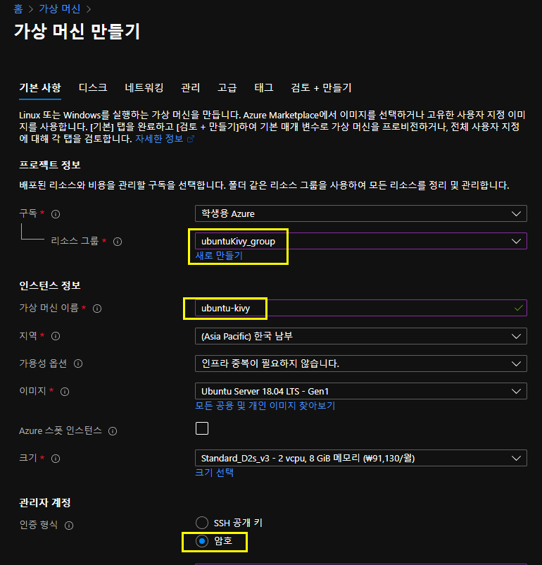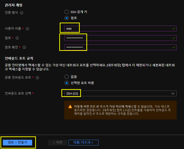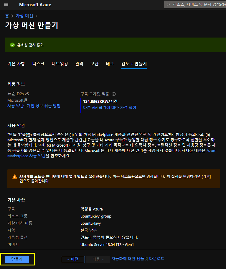 순서 : Azure Portal에서 가상머신 만들기 - IP주소로 Putty에서 터미널 열기