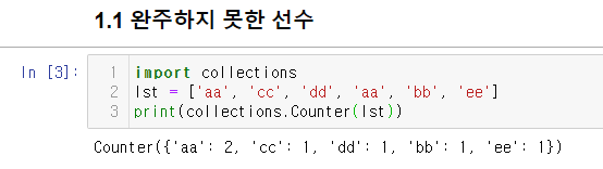 1. collections 안에 Counter() 를 통해 Hash 자료들의 갯수를 셀 때 사용한다.