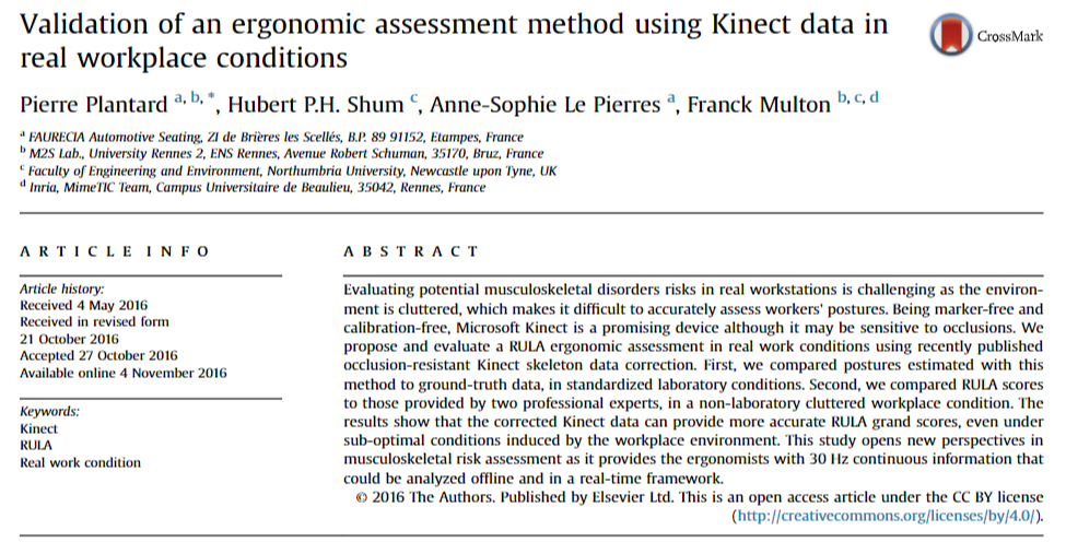 [Applied Ergonomics]Real time RULA assessment using Kinect v2 sensor review (0) | 2019.08.02 |