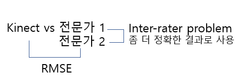 "두 평가자(Expert) 간 결과가 다른 경우, Kinect 결과와 더 가까운 값을 사용하였다"