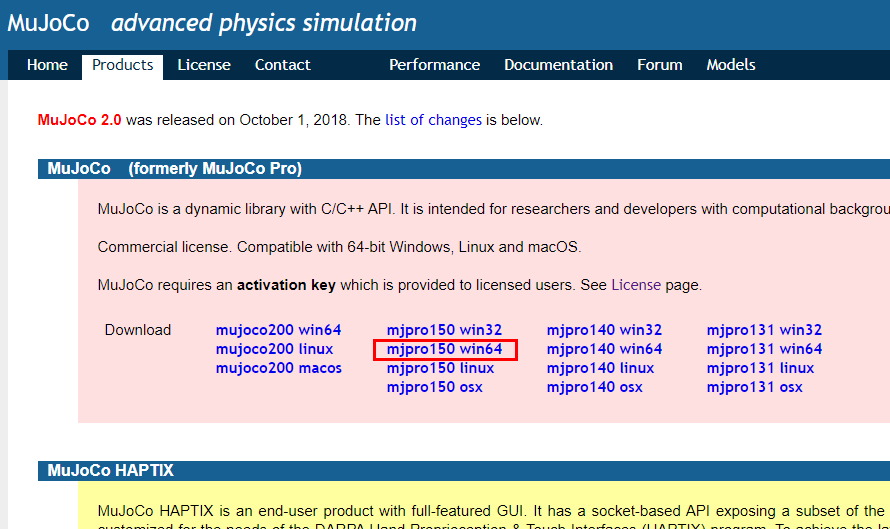 mujoco 설치사이트 접속