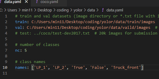 1) data.yaml 파일 수정(절대경로로 지정했다.)