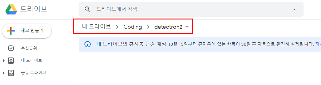 구글드라이브 - 새폴더 생성(ex. detectron2)